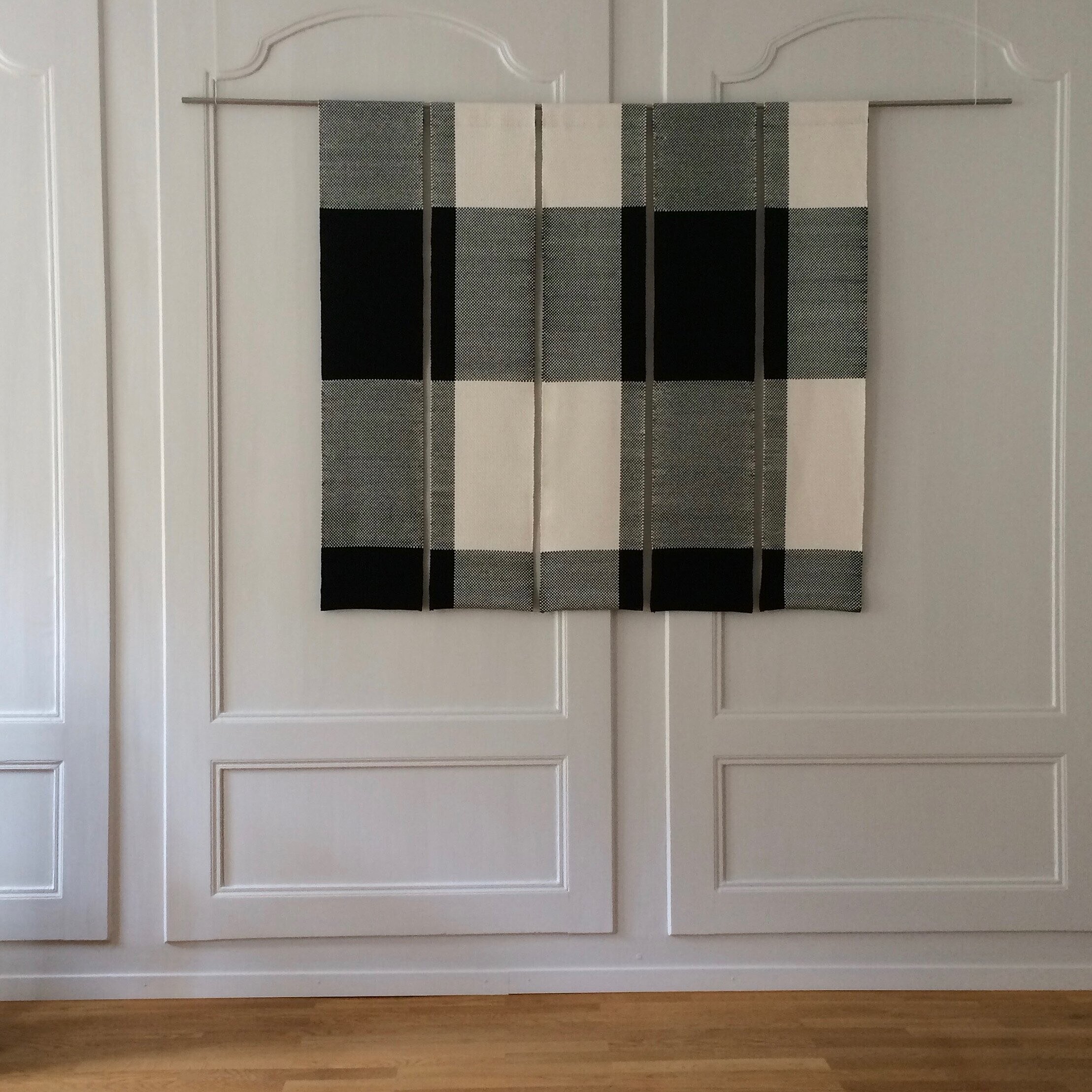 Meine bisherigen Arbeiten habe ich in Kettrips gewebt, d.h. die Kettfäden (Längsfäden) liegen so dicht nebeneinander, dass die Schussfäden (Querfäden) davon verdeckt werden. So entstehen unifarbene Gewebe oder solche mit Längsstreifen.