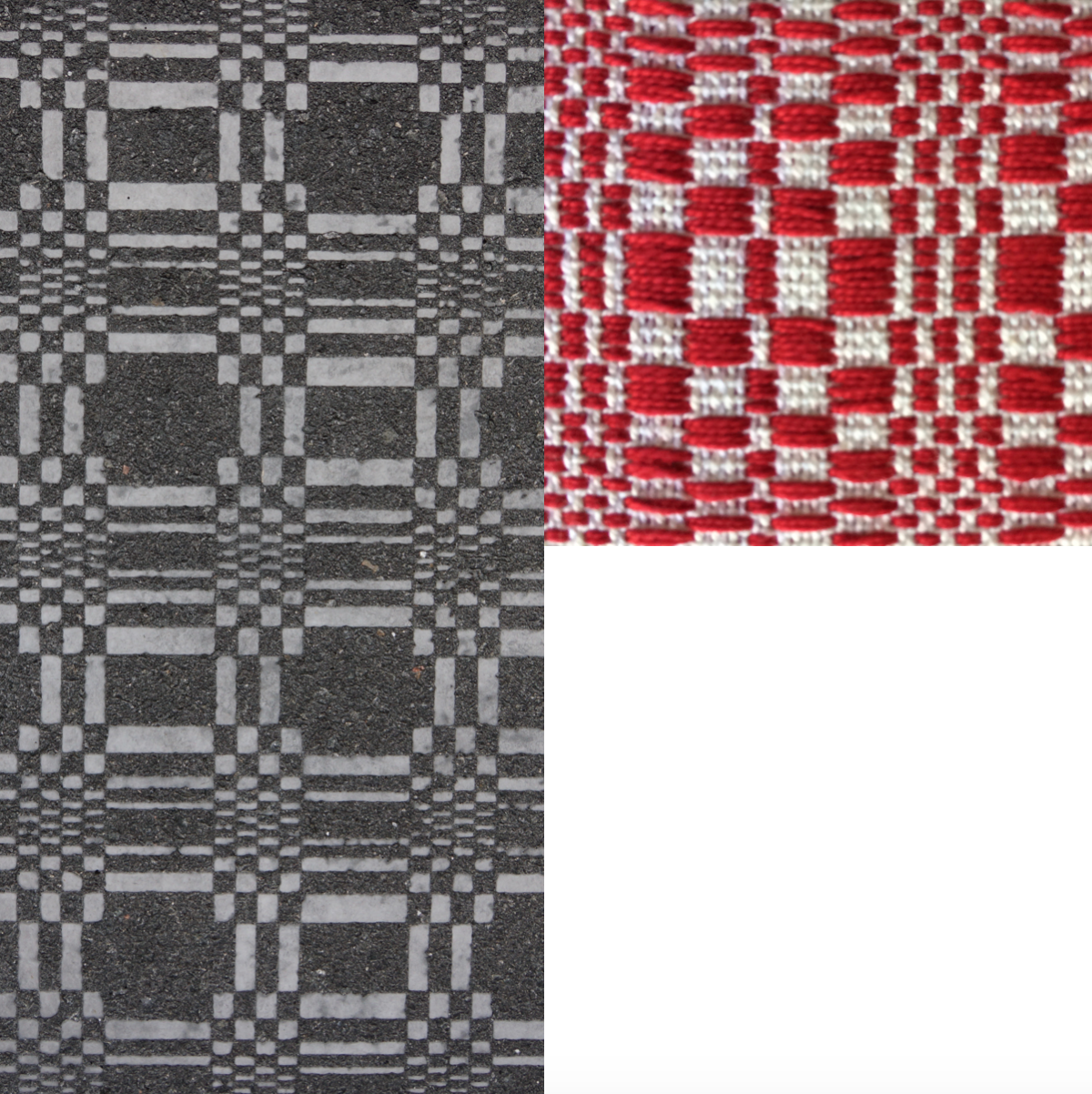 Weberei und Architektur: nicht nur im Privaten ein gutes Team. Hier rechts das traditionelle nordische Webmuster "Munkabälte", links eine davon inspirierte Hausfassade in Helsinki