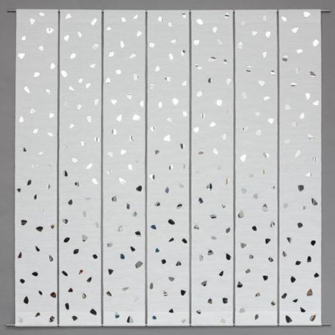 Über 250 aufgenähte Spiegelfragmente offenbaren dem Betrachter – je nach Standort, Lichtverhältnissen und Bewegung im Raum – veränderliche und überraschende optische Eindrücke